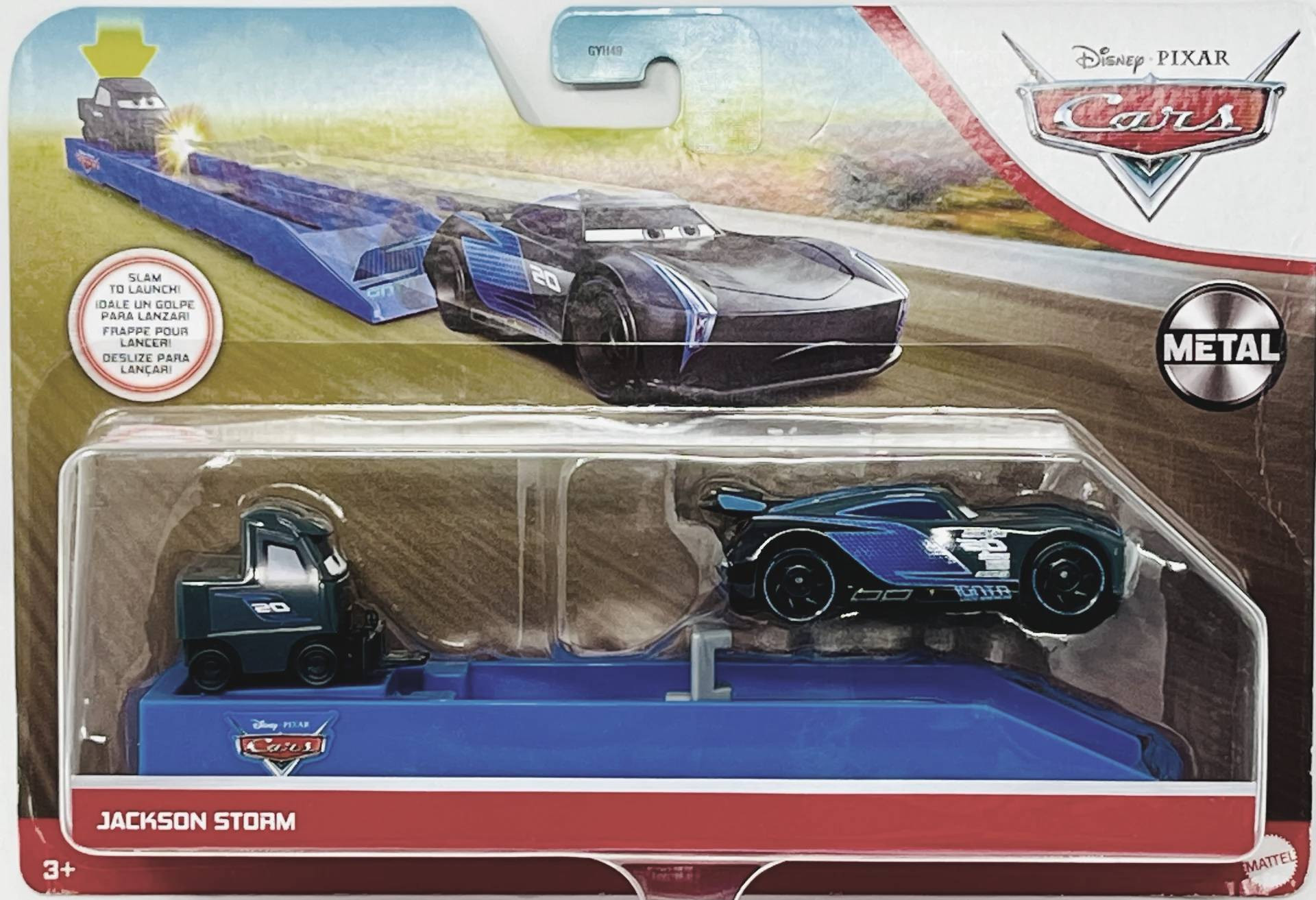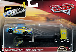 The Pit Row Launcher series released in 2014. Other cars in the assortment include Brian Spark (FLH78), Brick Yardley (FLH80), and Cars 3 Lightning McQueen (FLH76).