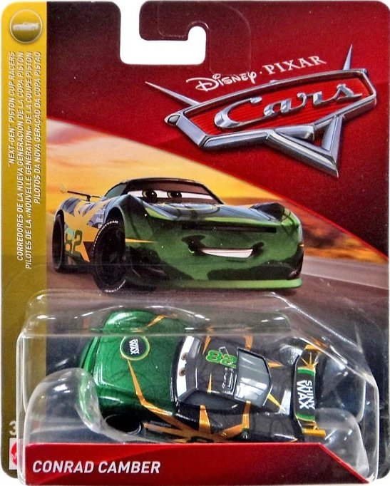 Conrad Camber is a Pixar Cars die-cast released by Mattel in 2019. The character appears in Cars 3.