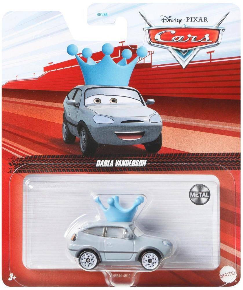 DHJ49 is one of 2 Darla Vanderson variants in the Pixar Cars die-cast line. A related release is HFB44 from 2022. Collectors working on the full Darla Vanderson subset need all of them.