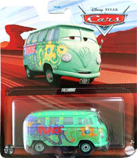 GYD49 is one of 11 Fillmore variants in the Pixar Cars die-cast line. Related releases include GYM69 from 2021, FLL37 from 2024, and FHG18 from 2017. Collectors working on the full Fillmore subset need all of them.