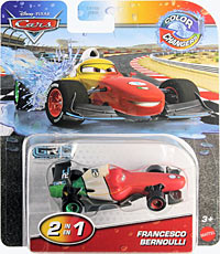 Francesco Bernoulli is the World Grand Prix contender of the Pixar Cars 2 franchise. This release features a Color Changers deco from Cars 2.