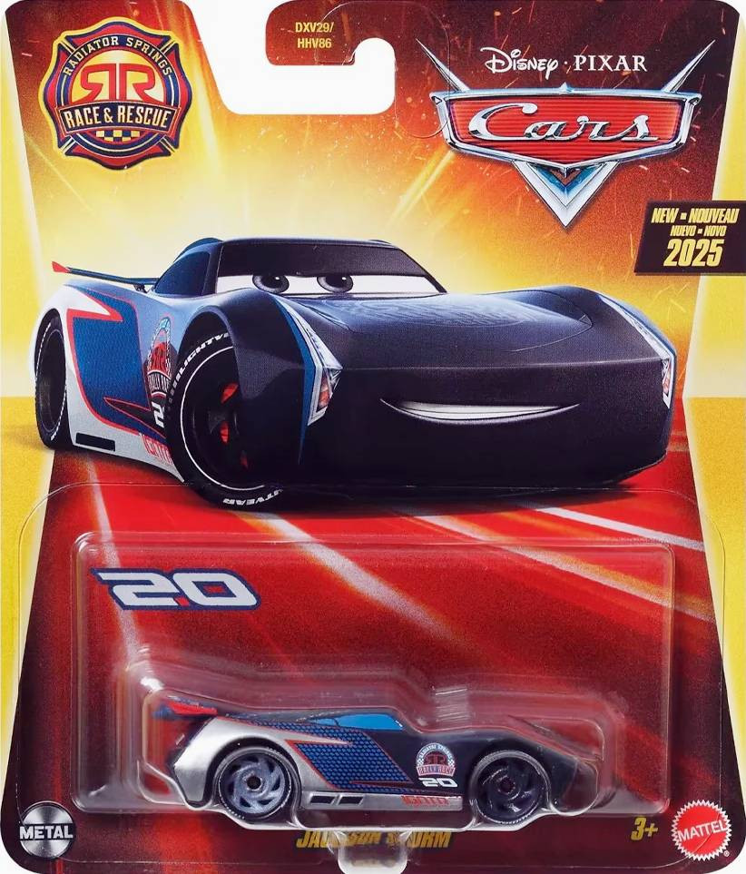 GDK07 is one of 11 Jackson Storm variants in the Pixar Cars die-cast line. Related releases include JDG52 from 2025, GFV36 from 2019, and GBJ38 from 2019. Collectors working on the full Jackson Storm subset need all of them.