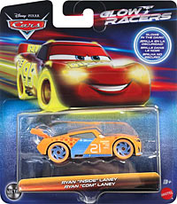 The Glow Racers series released in 2024. Other cars in the assortment include Dan Carcia (HYM85), Dinoco Cruz Ramirez (HJH97), and Fillmore (HPG80).