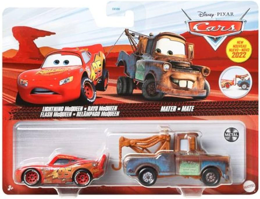 Lightning McQueen and Mater is a multi-pack release from Mattel from 2010. Both characters appear in Cars as part of the Pixar Cars franchise.