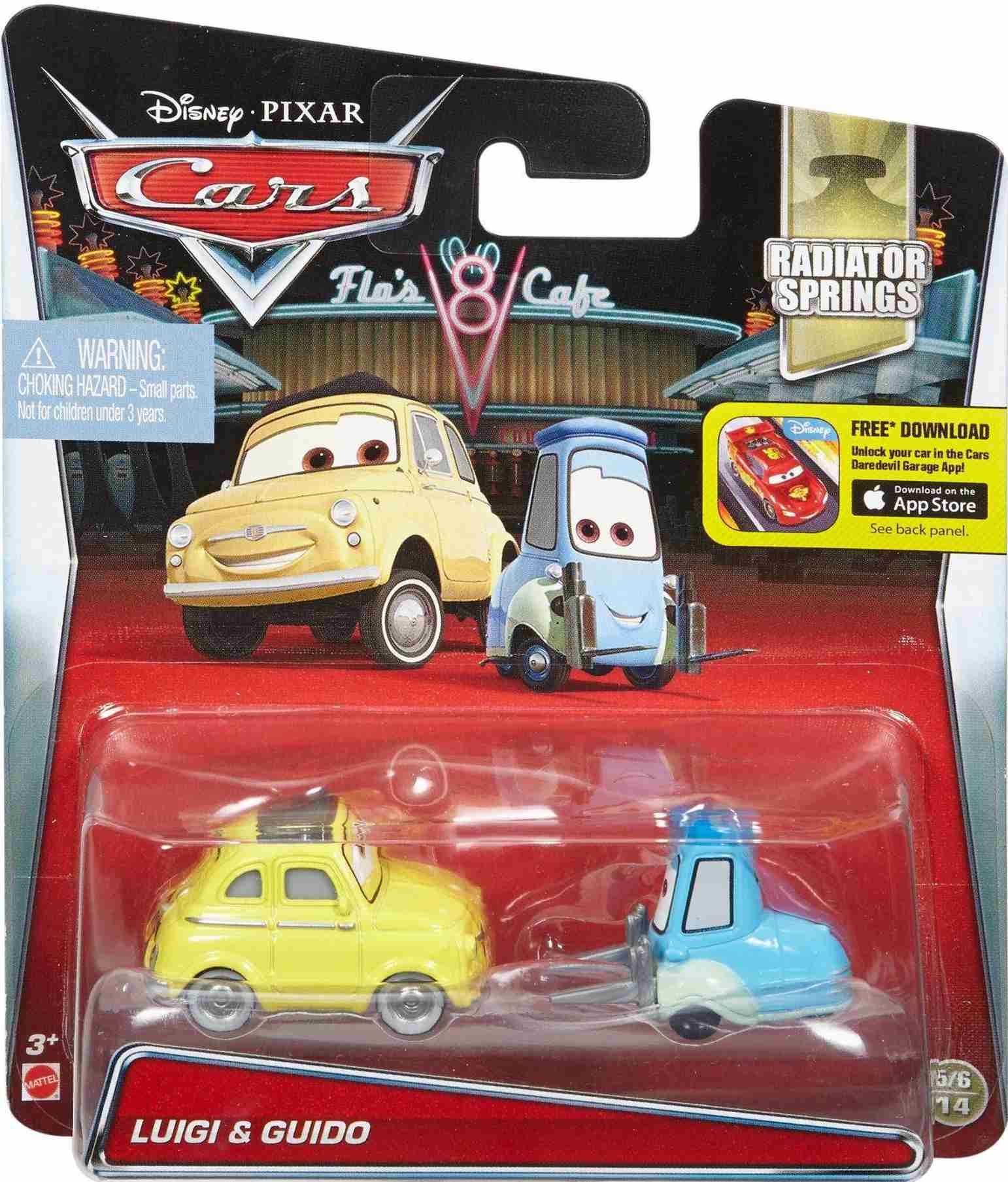 Luigi and Guido is a multi-pack release from Mattel from 2019. Both characters appear in Cars 3 as part of the Pixar Cars franchise.