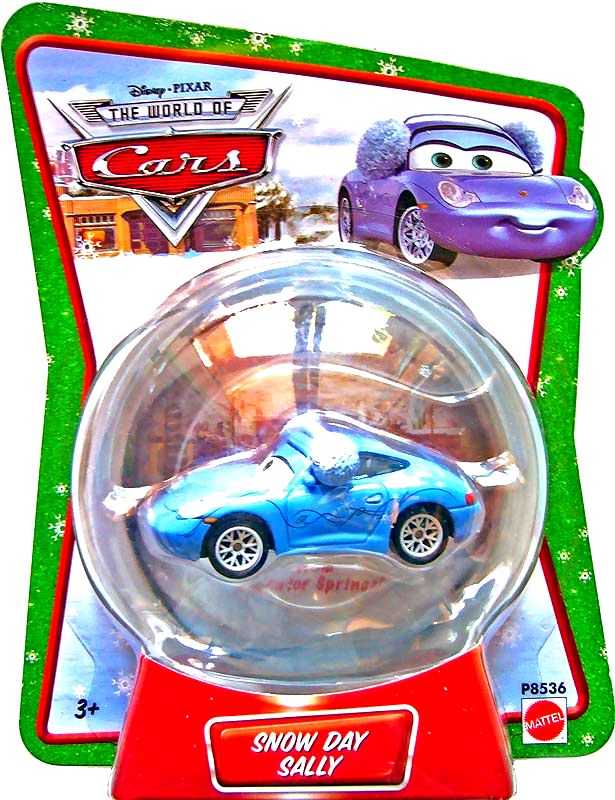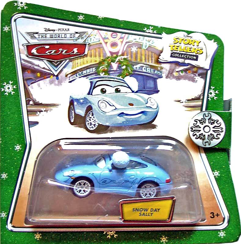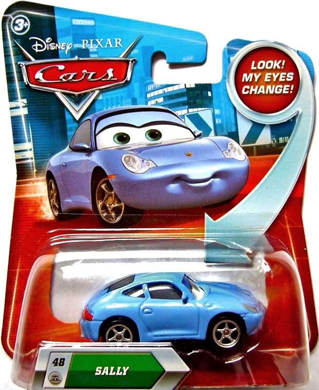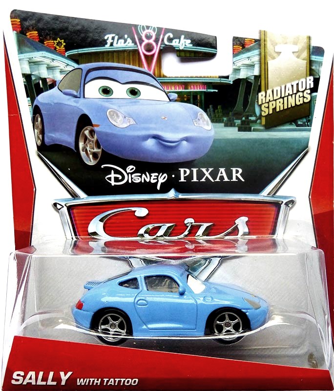 Sally Carrera is the attorney from Radiator Springs in the Disney Pixar Cars film franchise, voiced by Bonnie Hunt. The character is a 2002 Porsche 911 Carrera GTS, first appearing in the 2006 Pixar Cars movie. Mattel has released Sally Carrera as a die-cast collectible across multiple film eras and product lines since 2006.