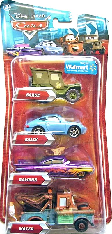 Among the most collectible Sally Carrera die-cast variants are Sally, Cruisin' McQueen (2010), Sally Look My Eyes Change (2009), and Walmart 4 Pack - Sarge, Sally, Ramone, Mater (2010). These releases command higher collector value due to limited production, exclusive retailer status, or strong demand from collectors completing the Pixar Cars set. Click any Sally Carrera on this page to see its current rarity score and 10-year collector value projection.